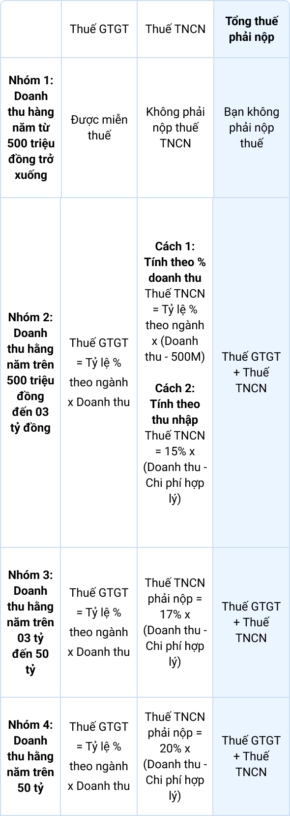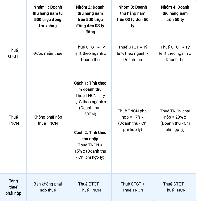 NGHĨA VỤ THUẾ HỘ KINH DOANH
